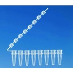 Barrette de 8 tubes PCR, en PP, avec bandes de bouchons attachés