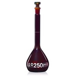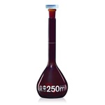 Matraz aforado, ámbar, clase A, con tapa de PE, graduación blanca